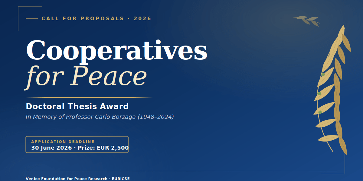 The Award is promoted by the Venice Foundation for Peace Research and EURICSE (European Research Institute on Cooperative and Social Enterprises), under the patronage of the University of Trento, in collaboration with the ICA Committee on Cooperative Research (CCR), the EMES International Research Network, and CIRIEC International.